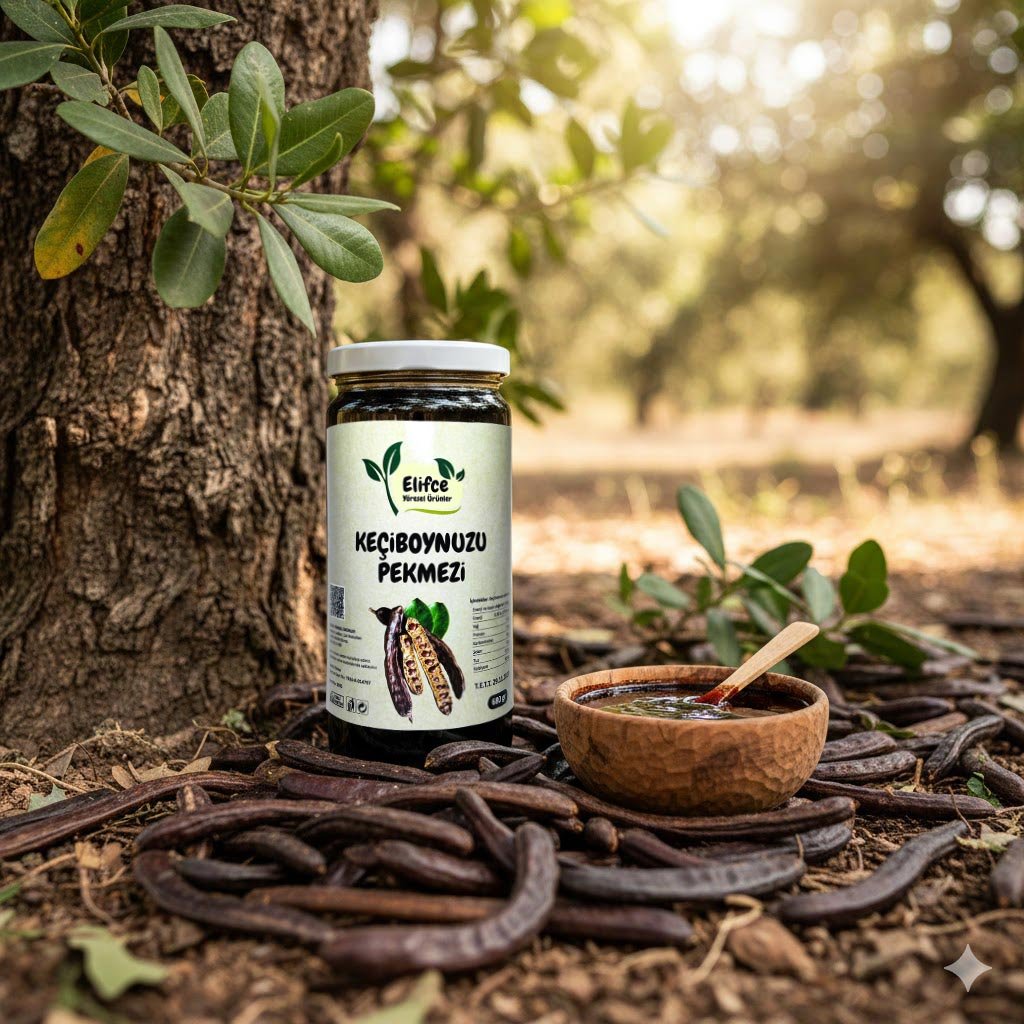 Doğal Keçiboynuzu Pekmezi, özenle seçilen keçiboynuzu meyvelerinin özünün geleneksel yöntemlerle, katkı maddesi eklenmeden kaynatılmasıyla hazırlanır. Elifce Yöresel Ürünler olarak bu ürünü; glikoz, rafine şeker veya yapay aroma kullanmadan, keçiboynuzunun doğal tadını, rengini ve yoğunluğunu koruyacak şekilde üretiyoruz. Kıvamı ve aroması tamamen doğal üretim sürecinde oluşur.